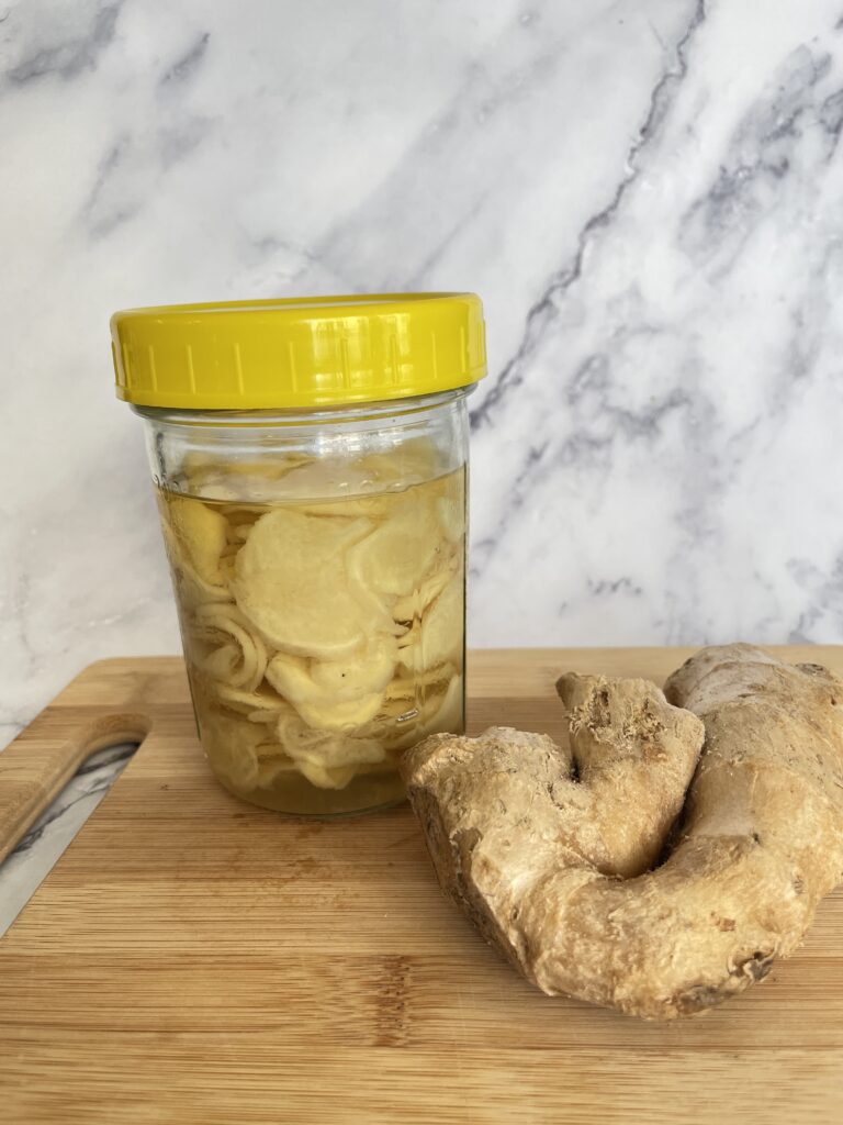 • Rinse ginger and add to a sterilized mason jar.